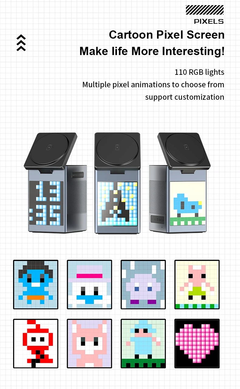 Bezprzewodowa ładowarka Qi2, budzik, zegar, funkcja głośnika Bluetooth